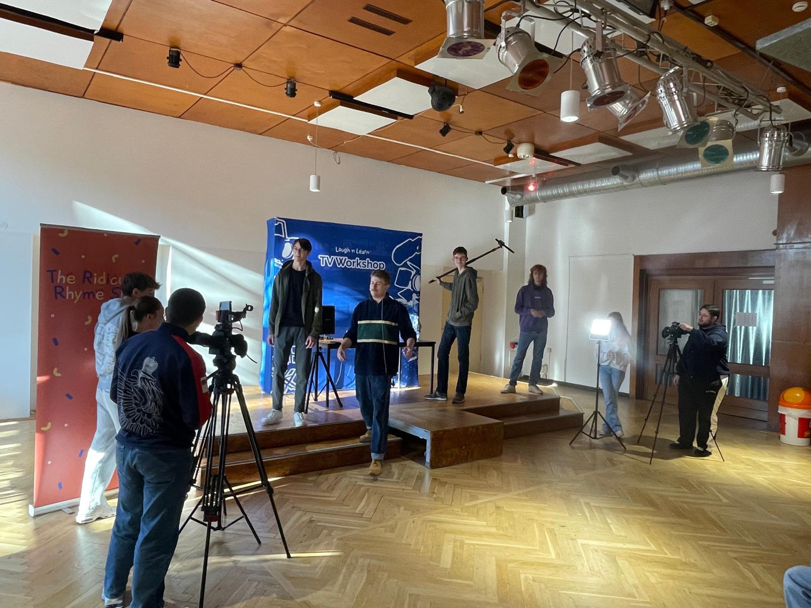 Am 07.11.2025 nahmen wir Schüler der 9. und 10. Klassenstufen an einem Behind the Scenes – TV Workshop von „Laugh ’n’ Learn“ teil. Dieses Projekt sollte uns auf spielerische Weise etwas über die Medienwelt beibringen. Und das Ganze auf Englisch!