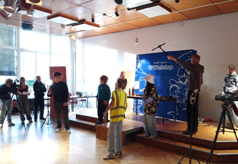 Am 7.11.2025 nahmen wir Schüler der 9. und 10. Klassenstufen an einem Behind the Scenes – TV Workshop von „Laugh ’n’ Learn“ teil. Dieses Projekt sollte uns auf spielerische Weise etwas über die Medienwelt beibringen. Und das Ganze auf Englisch!